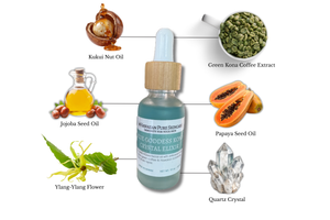 The Blue Goddess Kona Crystal Elixir is a fast-absorbing, non-greasy facial oil formulated for mature, dry, or sensitive skin. Infused with antioxidant-rich Kona green coffee and a trio of deeply hydrating island oils—kukui, noni, and papaya—this elixir restores radiance, soothes inflammation, and supports elasticity with every drop.
