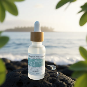 A glow-enhancing, crystal-infused facial oil featuring Hawaiian botanicals for hydration, luminosity, and renewal.