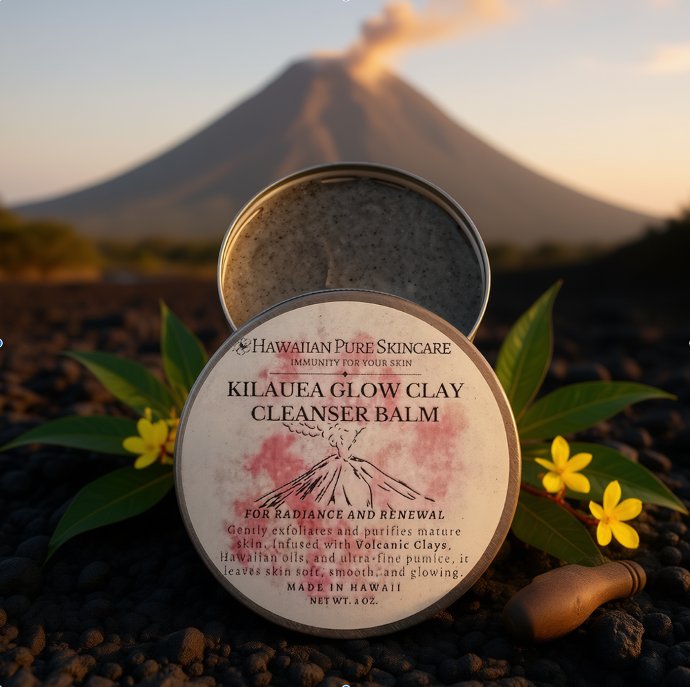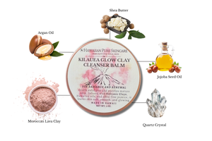 Unleash your natural glow with the Kilauea Glow Crystal Detox Cleansing Balm — a luxurious Hawaiian cleansing ritual inspired by the island’s most powerful volcano. This crystal-infused balm melts away makeup, sunscreen, and impurities while volcanic clay, activated charcoal, and fine pumice detoxify, refine, and gently exfoliate for a smooth, luminous complexion. Clear quartz channels purifying, balancing energy, while willow bark–infused jojoba and Hawaiian kukui nut oils nourish and clarify. On contact with warm water, the balm transforms into a silky cleansing milk that rinses clean, leaving skin soft, hydrated, and renewed.