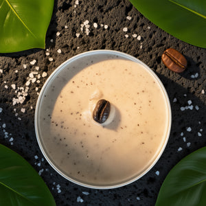 Rhassoul Clay adds a subtle coffee-tan hue and mineral detox, while fine Kona coffee grounds gently polish and renew.