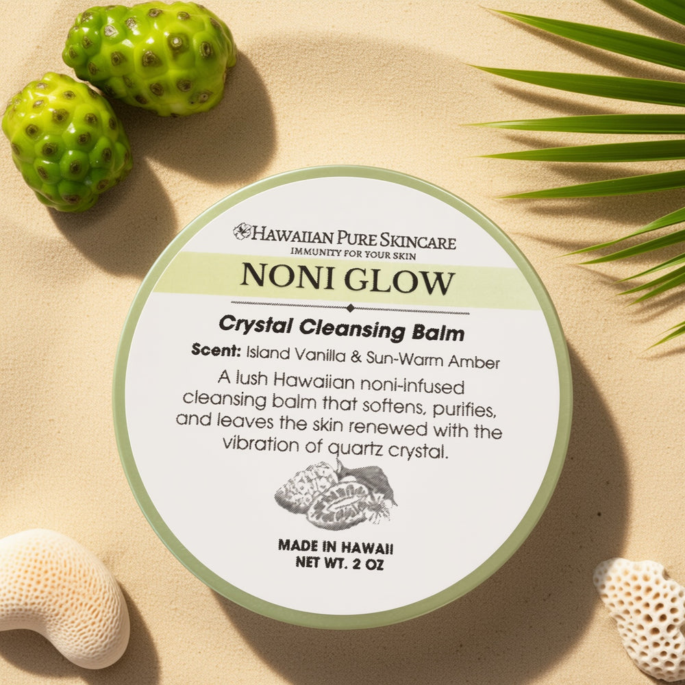 A luxurious balm-to-milk cleanser powered by the healing essence of Hawaiian noni, treasured for centuries for its soothing, renewing, and glow-boosting properties. This silky, pale-green balm melts effortlessly into the skin to dissolve makeup, sunscreen, and impurities, then emulsifies into a soft cleansing milk upon contact with water for a deep yet gentle cleanse that never strips or dries.